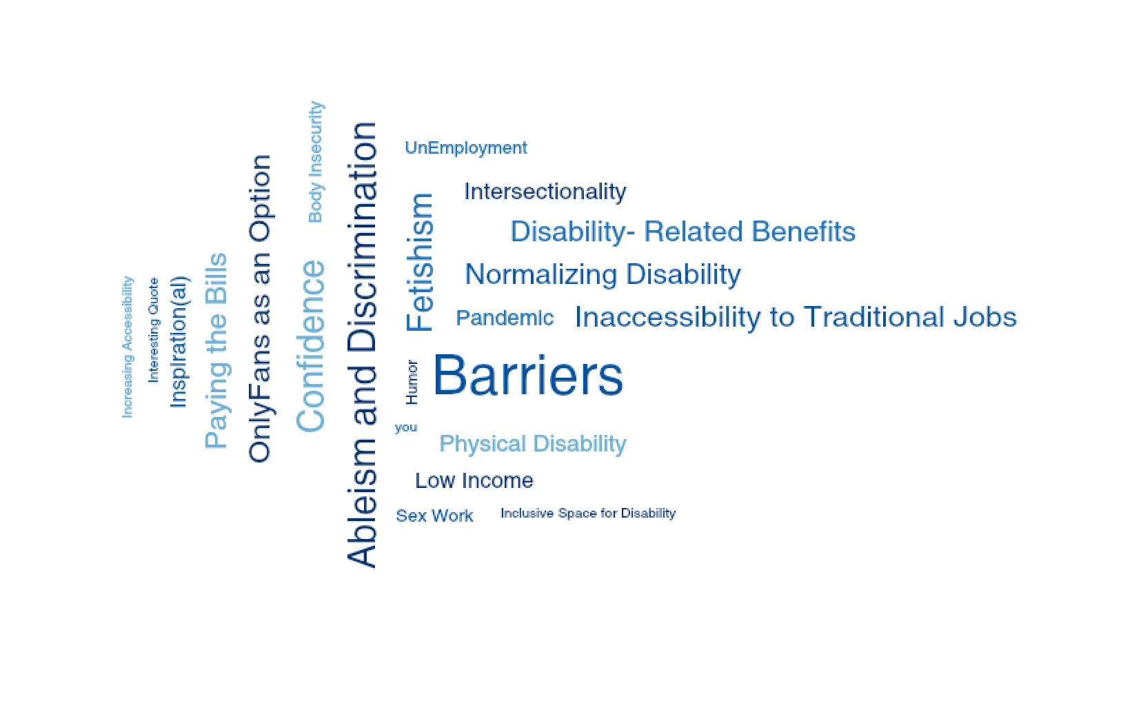 These sources offered very different vantage points. The Reddit material was especially powerful. Accounts were raw and candid. People with disabilities discussed their bodies, economic precarity, independence, vulnerability, and pride.